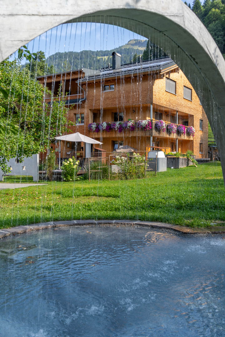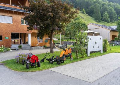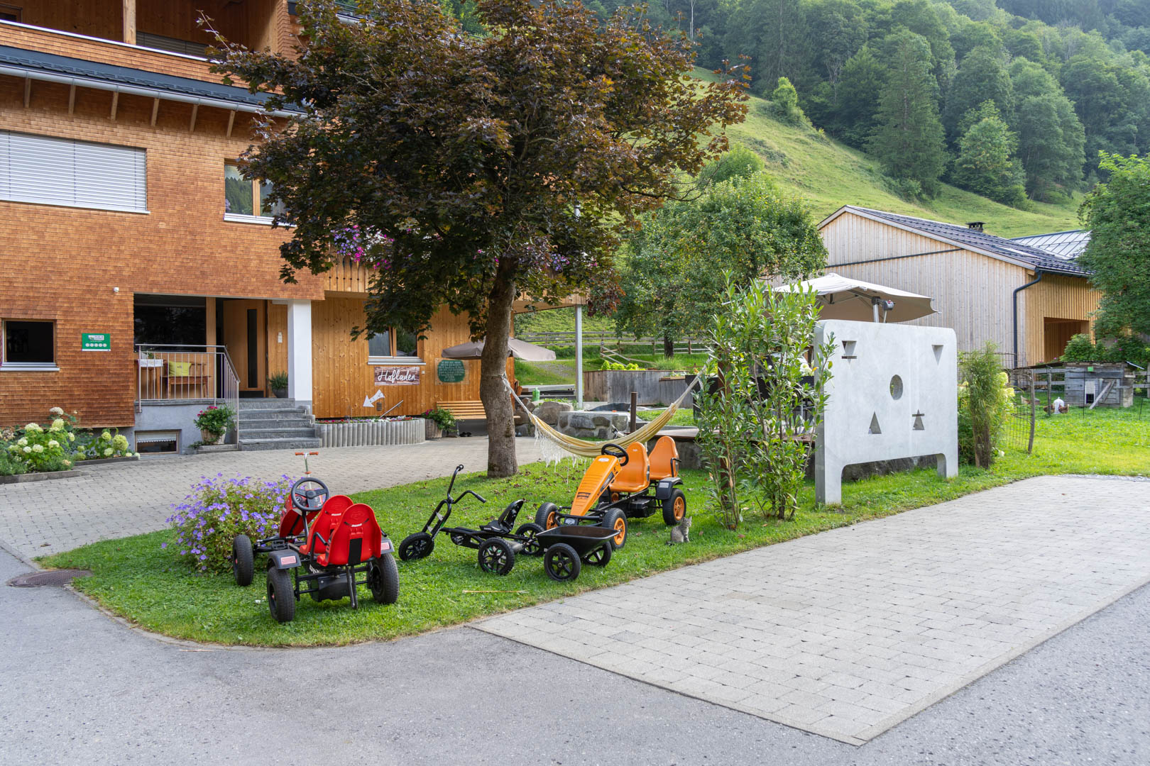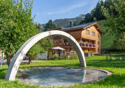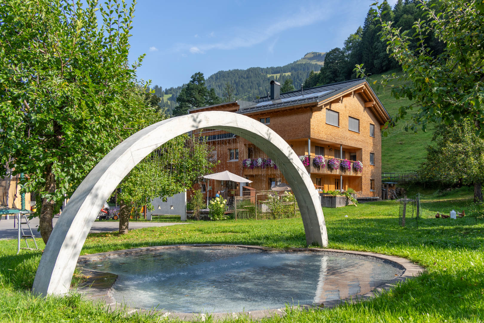 Wenn Sie es lieber gemütlich angehen wollen, unser gepflegter Hofplatz bietet sich an zum Spielen, Sitzen und Liegen, oder um einfach die Natur zu genießen. Sollten Sie Spaß im kühlen Nass bevorzugen: das beheizte Freibad von Schoppernau liegt wenige Gehminuten von unserem Haus entfernt.